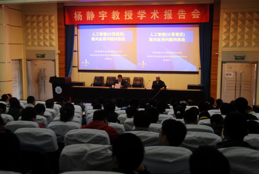 11月8日14时,应学院邀请,南京理工大学杨静宇教授到我院进行学术交流,并为我院师生作了题为“人工智能——面对应用问题的挑战”的学术讲座。讲座由许峰院长主持。