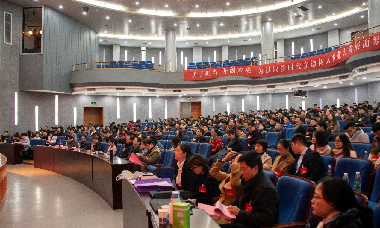 学院党委书记张雪刚同志代表学院第四届党委作了题为《勇于担当,开创未来,为谋取新时代立德树人事业大发展而努力奋斗》的报告。报告全面回顾了过去四年学院各项工作及经验,深刻分析了学院发展所面临的挑战,阐述了新一届党委带领学院发展的工作思路,将以习近平新时代中国特色社会主义思想为指导,紧紧围绕学校“双一流”建设目标与学院的重点工作,发挥好党委的政治核心作用,凝聚共识,群策群力,加强专业建设,培养创新型人才;突出学科特色,打造更多优势学科;提升原创能力,提高科学研究水平;创新人才机制,建设一流队伍;坚持传承与创新,形成学院特色文化;积极争取资源,改善办学条件,推动学院内涵式发展实现新跨越。