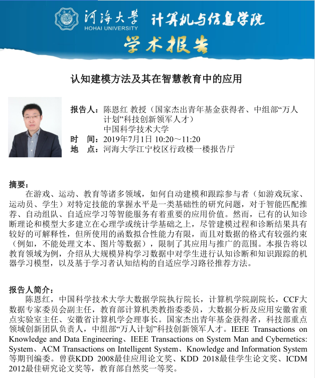 学术报告:认知建模方法及其在智慧教育中的应用