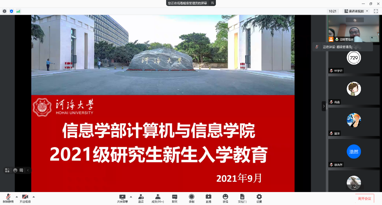 9月7日到9月11日,信息学部计信院2021级研究生线上入学教育系列活动顺利开展,活动通过腾讯会议举行,全体2021级研究生参加。