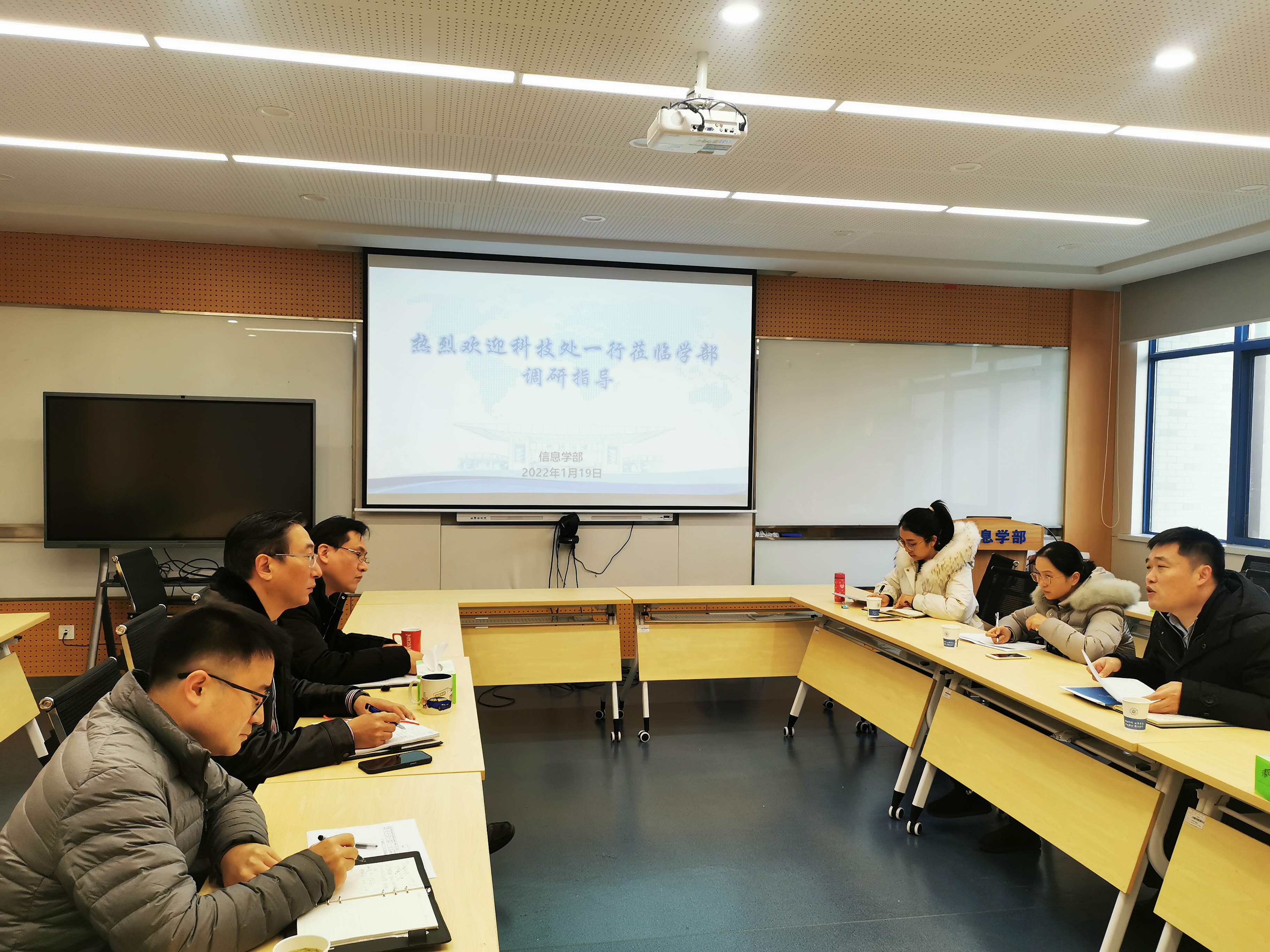1月19日,校科技处副处长孙林一行到信息学部计算机与信息学院调研。信息学部部长叶保留,计算机与信息学院副院长(主持工作)胡鹤轩,人工智能学院副院长刘凡参加调研。
