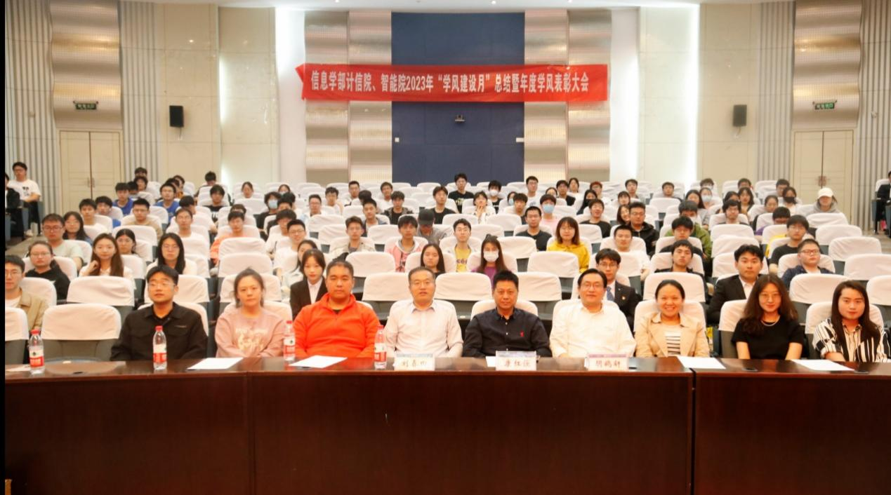 为展示学风建设成效,表彰先进。2023年5月12日,信息学部计信院、智能院开展“学风建设月”总结暨年度学风表彰大会。信息学部党委书记康红强、信息学部计算机与信息学院副院长(主持工作)胡鹤轩、信息学部党委副书记刘春田出席会议。