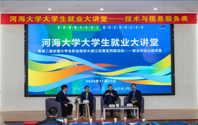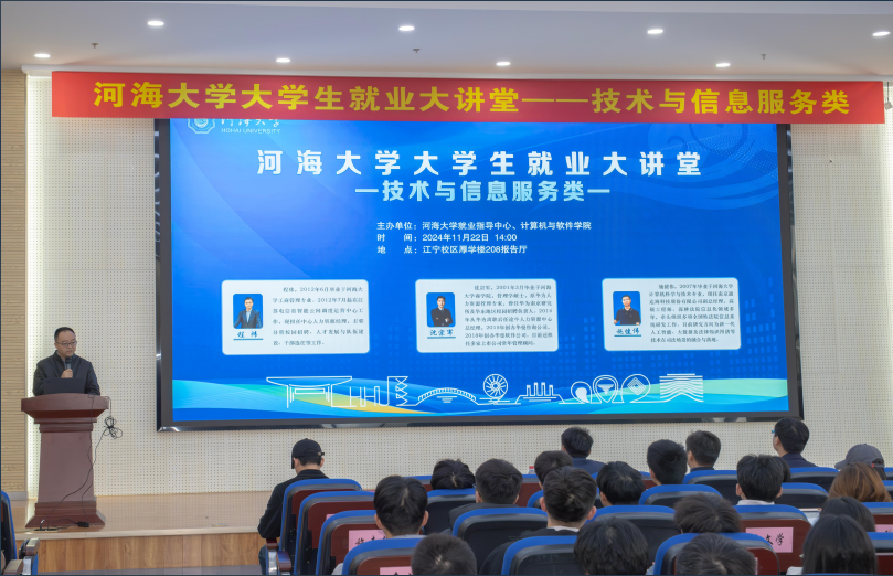 为积极搭建学校与企业、学生与职场之间高效沟通的桥梁,切实推动就业教育与思政教育、专业教育深度融合,不断提升就业育人实效,2024年11月22日下午,由学校学生就业指导中心和麻豆tv 主办的麻豆tv 大学生就业大讲堂(技术与信息服务类)暨第二届全国大学生职业规划大赛江苏赛区同期活动——就业创业指导公益巡讲在江宁校区举行。活动邀请江苏电信智能云网调度运营中心人力资源经理程炜、南京华曼软件技术有限公司创始人沈宗军、南京通达海科技股份有限公司副总经理施健伟等三位嘉宾出席,麻豆tv 计算机院党委副书记张剑宇主持活动。麻豆tv 、商学院、公共管理学院、数学学院等200余名本科生、研究生同学参加。
