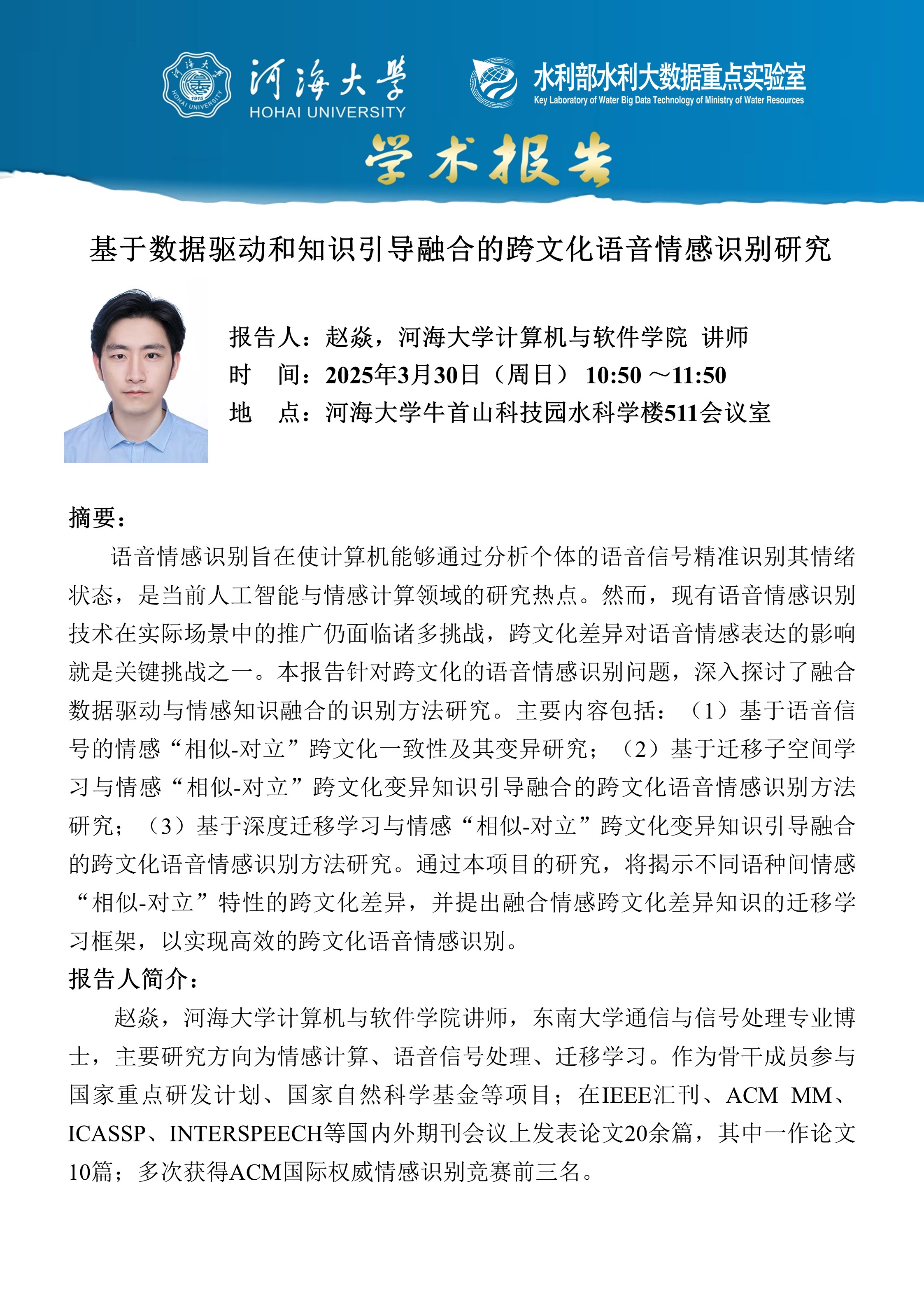 学术报告:基于数据驱动和知识引导融合的跨文化语音情感识别研究