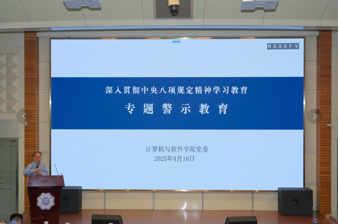 蒲书记强调,作为高校教师,要深刻领会和贯彻落实“进一步吃透中央八项规定及其实施细则精神”的重要要求,深刻认识中央八项规定是管长远的铁规矩、硬杠杠,以严的标准、严的要求检身正己,把学习教育与推动重点工作紧密结合,坚定信心、苦干实干,自觉遵规守纪,落实立德树人根本任务,为推动学院高质量发展,培养拔尖创新的计算机学科人才贡献力量。(金明珠供稿)