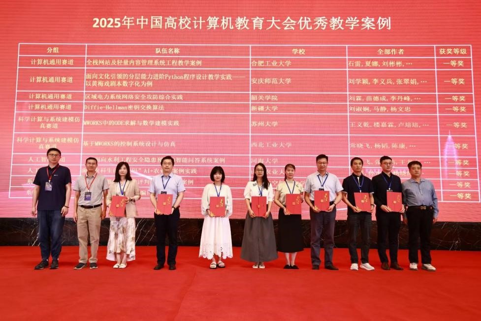 大会设置10场特色专题论坛,涵盖人工智能赋能教育、产教融合、工程认证与创新能力培养等热门方向,同步开展教学研讨、教学案例大赛、优秀论文交流等活动。学院副院长刘凡荣获2025年全国高等学校计算机教育研究会优秀青年教师奖,学院教师陶飞飞、张雪洁、王龙宝、余宇峰总结凝练的《一种面向水利工程安全隐患预控的智能问答系统案例》荣获大会优秀教学案例一等奖。